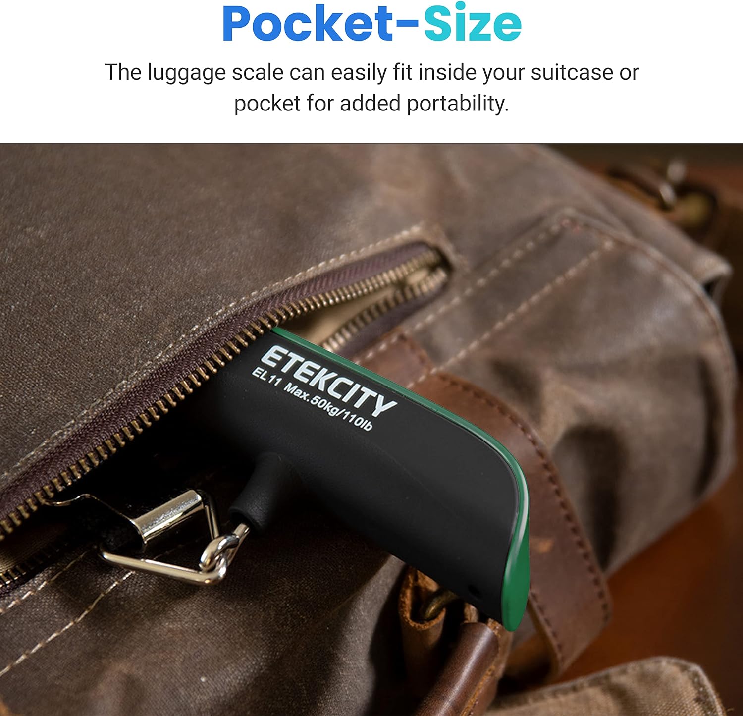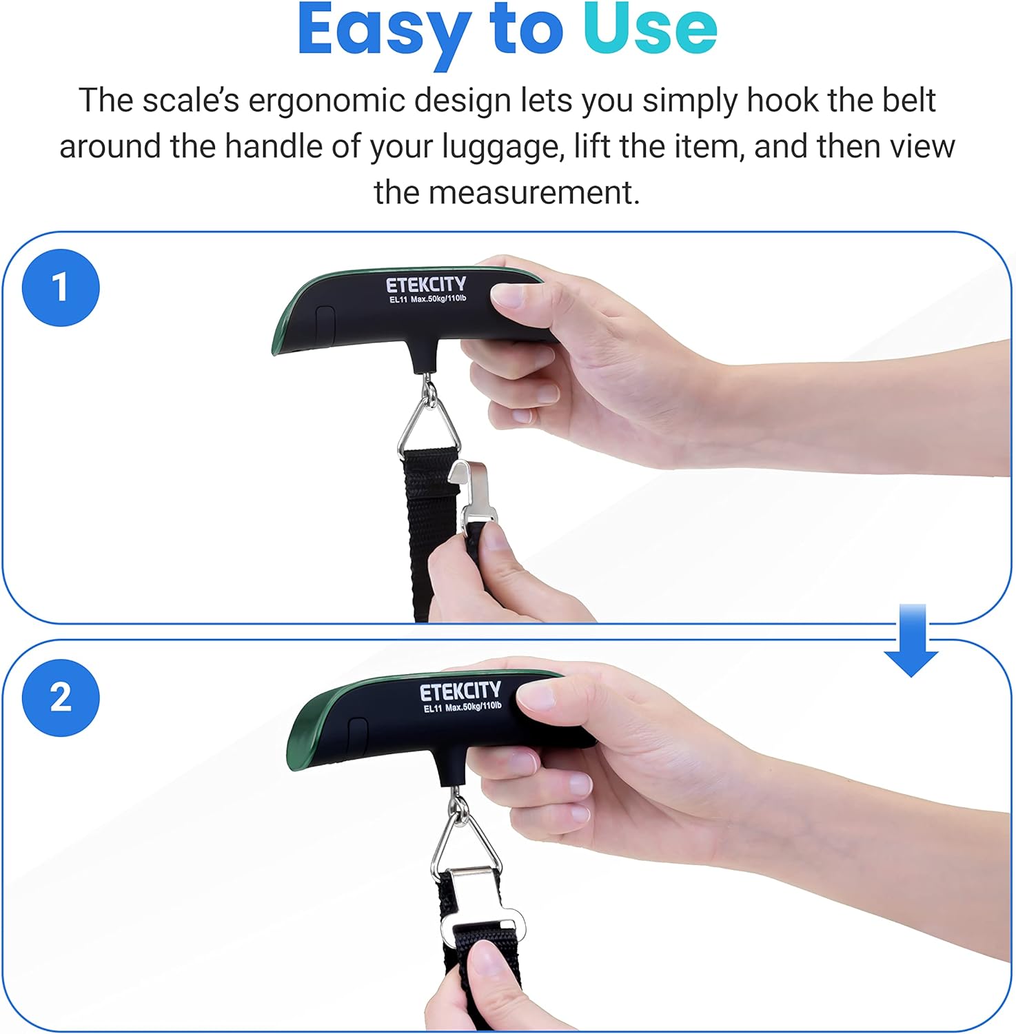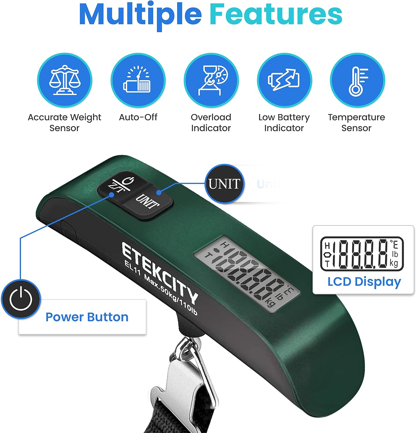 Product Description: Meet your premium travel companion: The Etekcity Luggage Scale. This digital weight scale is the must-have accessory for every trip. Compact yet powerful, this scale is specially designed to give you peace of mind when travelling. Built with a high precision sensor, it accurately measures up to 110 pounds, helping you avoid unnecessary airline fees for overweight luggage. Its easy-to-read LCD display ensures you can clearly see the weight even in low-light situations. But it doesn’t stop there; it also includes a temperature sensor feature which makes it easier for you to plan for your upcoming travels. With this added function, you can ensure the temperature conditions of your stored luggage making the Etekcity Scale a unique two-in-one travel gadget. For optimum comfort while using, the Etekcity Luggage Scale is made with a rubber paint handle. This gives you the best possible grip, even when weighing those heavy suitcases; ensuring comfortable handling every time. This scale is portable and handheld, making it so easy to carry around. It takes up minimal space in your luggage, leaving ample room for holiday souvenirs. Weigh your suitcases anywhere, anytime! And no worries about powering up your scale; we’ve got you covered! Each Etekcity Luggage Scale includes a battery so you won’t have to worry about finding one before your trip. Never fear the surprise of overweight luggage again with the Etekcity Luggage Scale. Pack it with your travel essentials and fly with assurance! Now every journey can start on the right note. Make this efficient tool your best travel companion on every adventure.