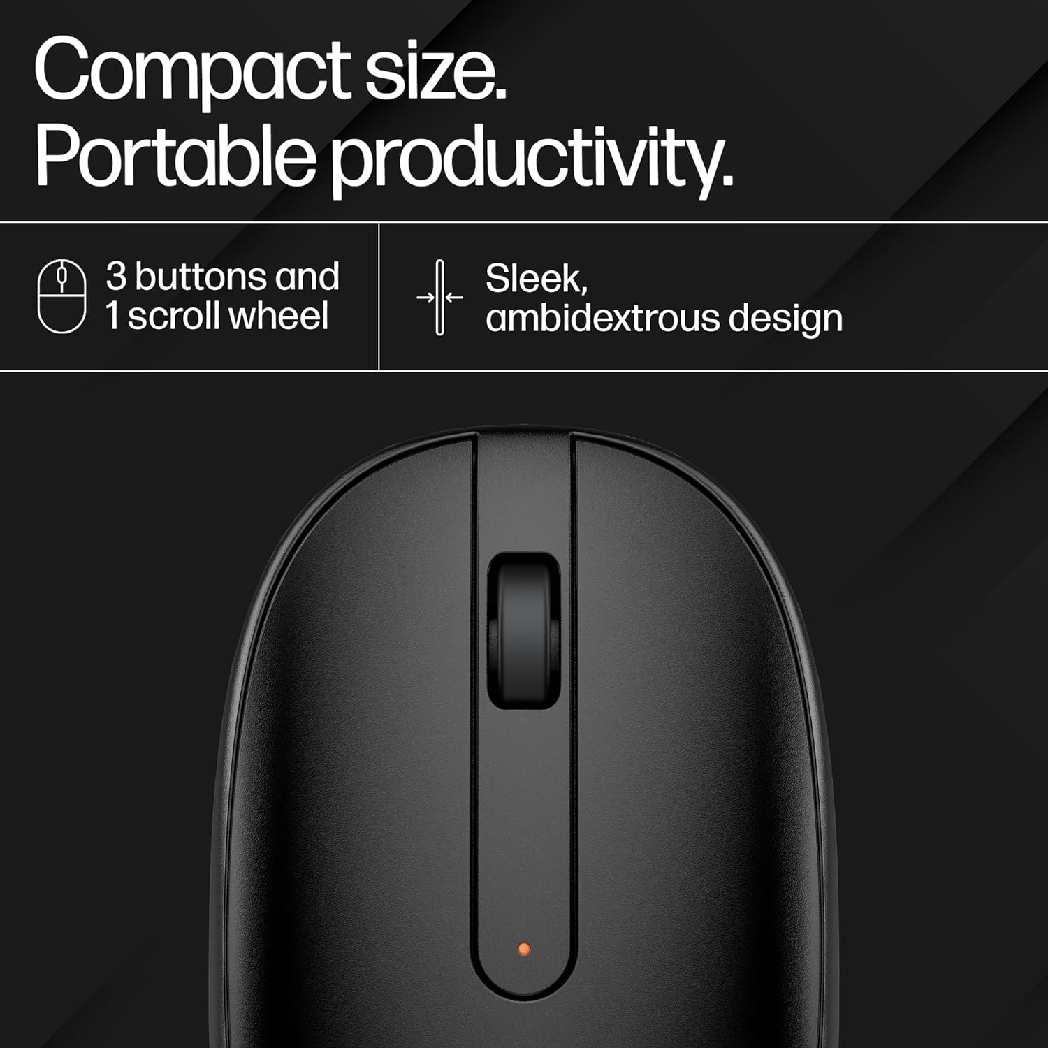 Product Name: HP 240 Bluetooth® Mouse, Lock-On with Bluetooth® 5.1 Wireless Connectivity, Super Accurate 1600 DPI, Sleek Ambidextrous Design, Three Buttons and Scroll Wheel, (3V0G9AA), Black Achieve better precision and control with the HP 240 Bluetooth® Mouse. It is powered by advanced Bluetooth® 5.1 wireless connectivity that offers faster data transmission and a more stable connection than previous versions. No cord, no clutter. Simply connect and start working effortlessly—up to 10m away from your device. The HP 240 Bluetooth® Mouse features a super accurate 1600 DPI tracking system that provides precise movements on nearly any surface. It delivers fast motion detection and quick response times, making it your perfect partner for gaming, design work, or daily use. Designed for everyone, this mouse features a sleek, ambidextrous design that is comfortable for both left and right-handed users. Its streamline shape not only adds a touch of elegance to your desk but also ensures prolonged use without fatigue. The HP 240 Bluetooth® Mouse comes fitted with three easy-to-click buttons (right, left, and middle) and a smooth-scrolling wheel for rapid navigation and faster operations. The silent-click design makes this mouse ideal for an office or home, offering a peaceful working environment. Finished in a stylish black, this HP 240 Bluetooth® Mouse (3V0G9AA) can seamlessly blend with any desktop or laptop setup. It’s ultra-portable, lightweight, and compact design makes it a perfect travel companion. Stay ahead in your daily activities with the absolute control and precision of the HP 240 Bluetooth® Mouse. Note: Batteries not included.